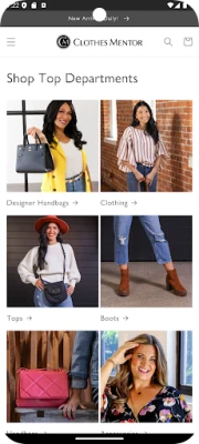 GET GENTLY USED WOMEN'S CLOTHES FOR UP TO 70% OFF Start your journey with Clothes Mentor today. Shopping at Clothes Mentor means choosing to shop sustainably while supporting your fellow community members. Because everyone deserves to express themselves with style. Clothes Mentor allows you to shop designer brands at a price you can afford, all while helping the planet. Find a nearby Clothes Mentor or buy used women’s fashions on our app, shopping products from all our Clothes Mentor locations in one place.