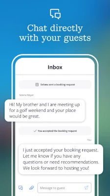NEVER MISS A BOOKING Get alerted every time you receive an inquiry or booking request! You can reply to an inquiry and approve or decline bookings directly from your smartphone.