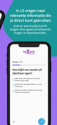 De app vraagt je om een aantal vragen te beantwoorden, waarna je toegang krijgt tot gepersonaliseerde artikelen, video's, podcasts en trainingen. Deze informatie is specifiek geselecteerd op basis van jouw situatie en zorgt ervoor dat je de ondersteuning krijgt die je nodig hebt op het juiste moment. Wanneer de situatie verandert, biedt de app nieuwe handvatten. Daardoor krijg je de juiste ondersteuning op het moment dat je het nodig hebt.