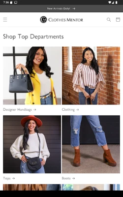 Clothes Mentor is a sustainable women’s resale brand, offering name-brand and designer products for up to 70% off retail prices. Clothes Mentor sells “gently-used” clothing, shoes, boots, handbags, jewelry, and other accessories. Clothes Mentor gives you fresh, modern styles in name brand apparel and accessories – at great prices. Whether you are searching to buy sustainable, name-brand and designer clothing or sell your used clothes for cash in-store, Clothes Mentor is the resale women's clothing shop for you. We believe that women are more than one size, which is why we offer modern and fresh styles from sizes 0 to 26.