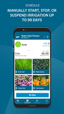 • Manually start, stop, or suspend irrigation for up to 99 days