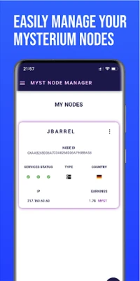 You can view your own nodes, add new ones, delete them, manage services (switch on and off) You can also view the total generated revenue (in MYST currency) and revenue for each node