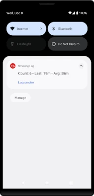 ★ Optional notification icon that displays last smoke status to quickly determine if you should wait to smoke or not