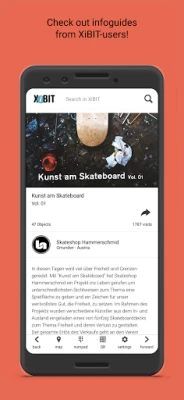 XiBIT turns your smartphone to an infoguide: Find out about objects in museums and other showrooms, listen to audiocommentaries and visit points of interest at your trip. Watch infoguides of XiBIT users, who can describe objects with images, text, audio, videos, links and geodata under www.xibit.info. The app combines a search function, maps for finding near contents, a numpad and a QR code scanner for recalling objects directly. Find out about exciting things via a map which shows profiles around you.